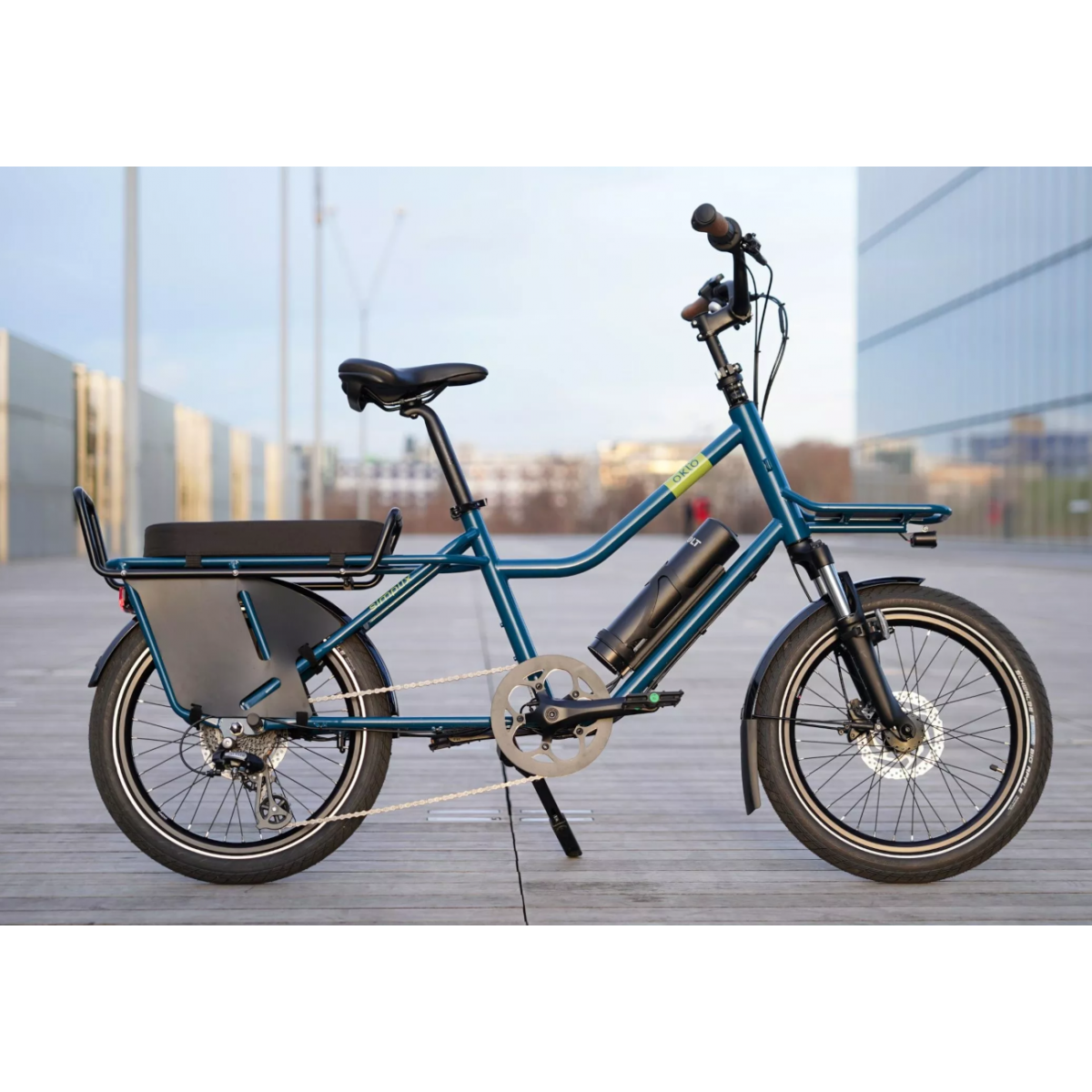 Le Oklö Simplix Plus est un mini-vélo cargo électrique urbain, compact, léger et polyvalent, idéal pour la vie quotidienne en ville. Il combine une assistance électrique efficace, une capacité de transport intéressante et une maniabilité facile, il est prévu pour un passager jusqu'à 50kg.