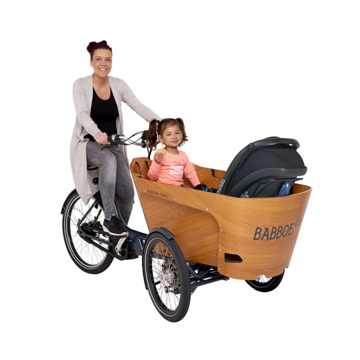 transportez facilement et en toute sécurité votre bébé dans le vélo cargo dès ses 3 mois en gardant un œil sur votre enfant.