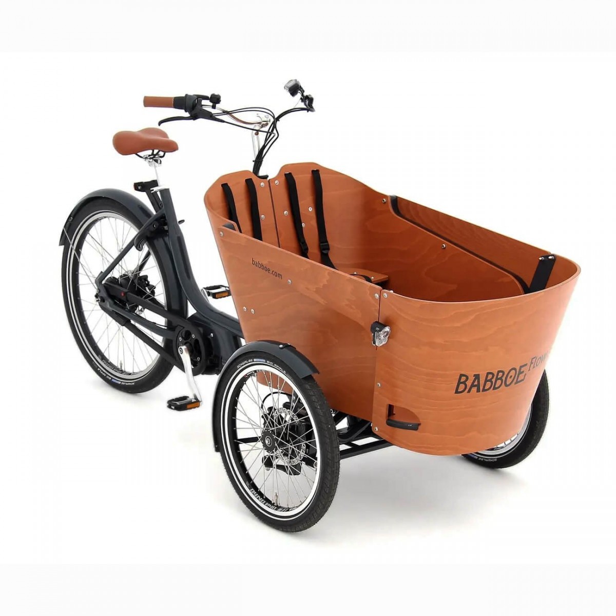 Le Babboe Flow Mountain est un vélo cargo triporteur conçu pour offrir un équilibre parfait entre stabilité, confort et maniabilité. Idéal pour les familles avec de jeunes enfants, ce modèle haut de gamme allie une caisse spacieuse, une assistance électrique puissante et une direction innovante qui facilite la conduite. Ce triporteur a les roues avants directrices, vous gagnez en motricité la caisse avant ne tourne pas.