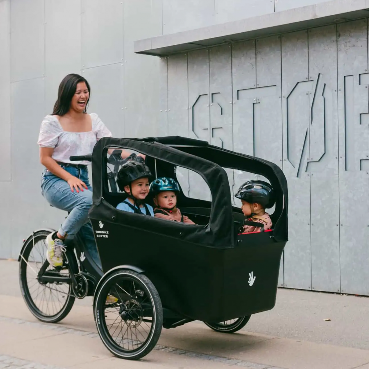 Le Triobike Boxter est un triporteur cargo électrique danois pensé comme une alternative élégante et écologique à la voiture familiale, capable de transporter jusqu’à 4 enfants, un chien et des courses dans sa caisse avant d’environ 280 L